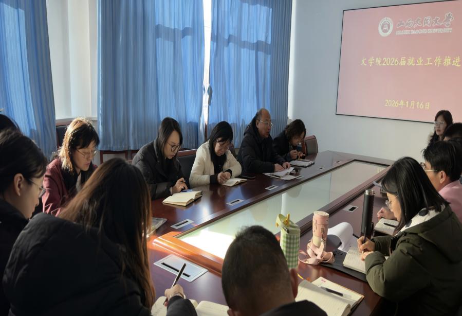 为高效推动毕业生就业工作,提升就业服务质量,1月16日,文学院于致知楼会议室召开2026届毕业生就业工作推进会。院党委书记刘德明、院党委副书记张英芳、副院长关秀丽、院团委书记冀敏、就业联系人张志婧及专兼职辅导员参加会议。